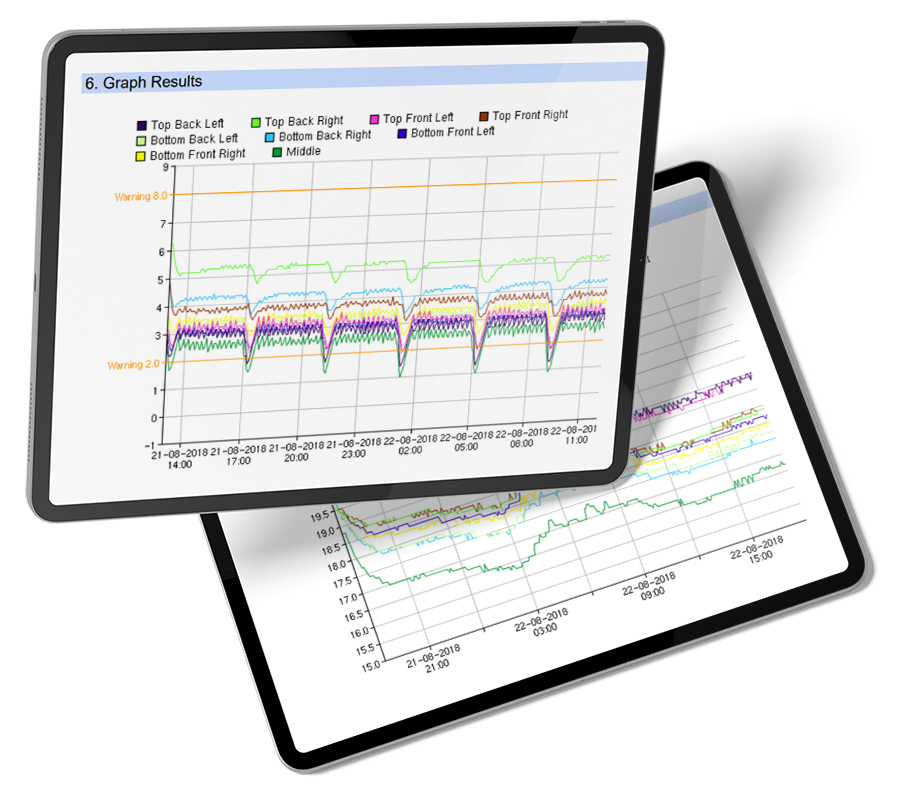 Kelsius sensors can be used for temperature mapping to test the uniformity of heat distribution within a defined area with our reporting software.